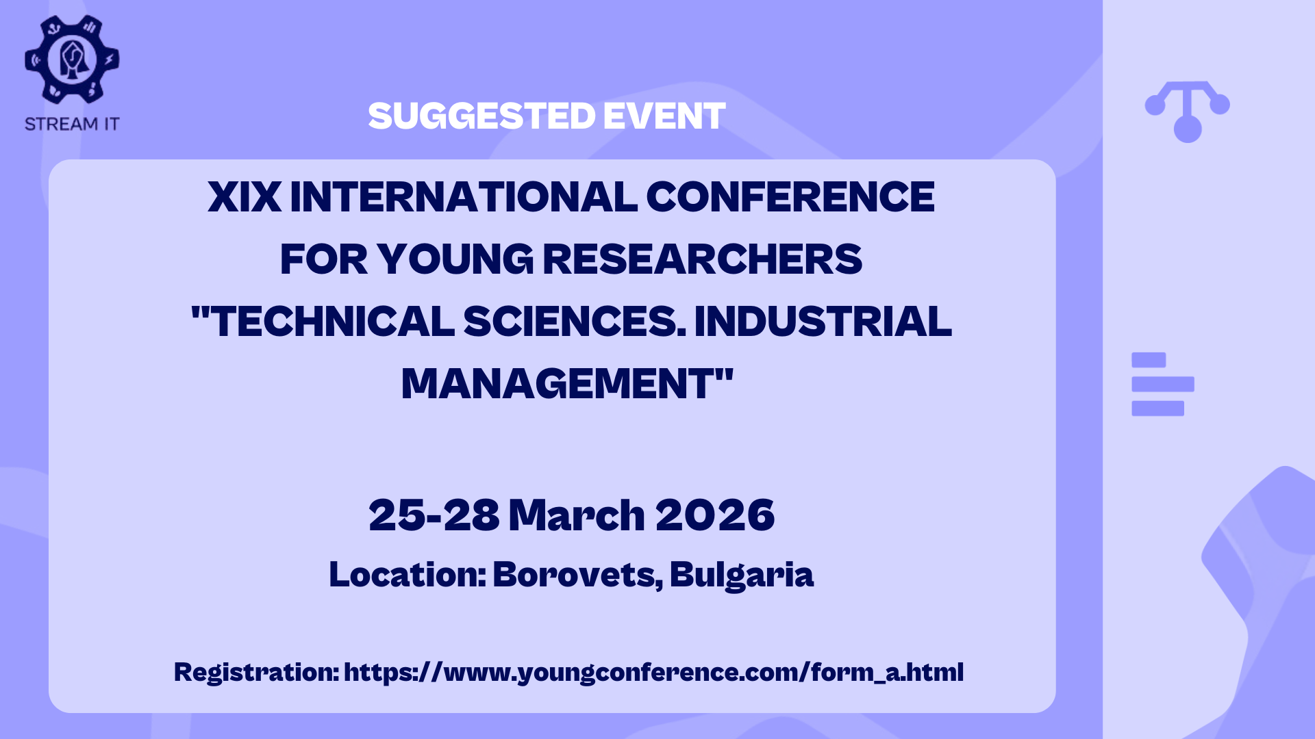 The XIX International Conference for Young Researchers “Technical Sciences. Industrial Management” brings together young researchers, PhD candidates, engineers, academics, and industry professionals to present research results, exchange ideas, and discuss current trends in technical sciences and industrial management. The conference offers an international platform for interdisciplinary dialogue, with a focus on the practical application of research in industry, innovation-driven management, and technological development.